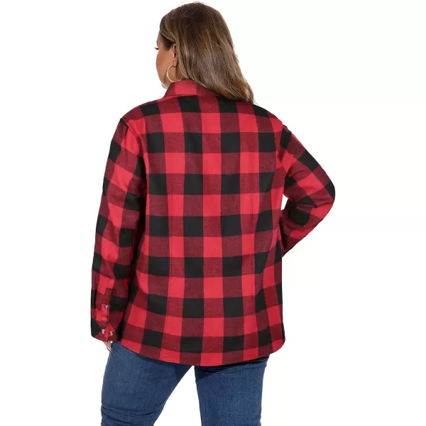 LALAGEN Plus Size Flannel Shirts for Women 2024 Oversized Boyfriend Plaid Shirt Casual Long Sleeve Button Down Tops Blouse(Christmas Red)