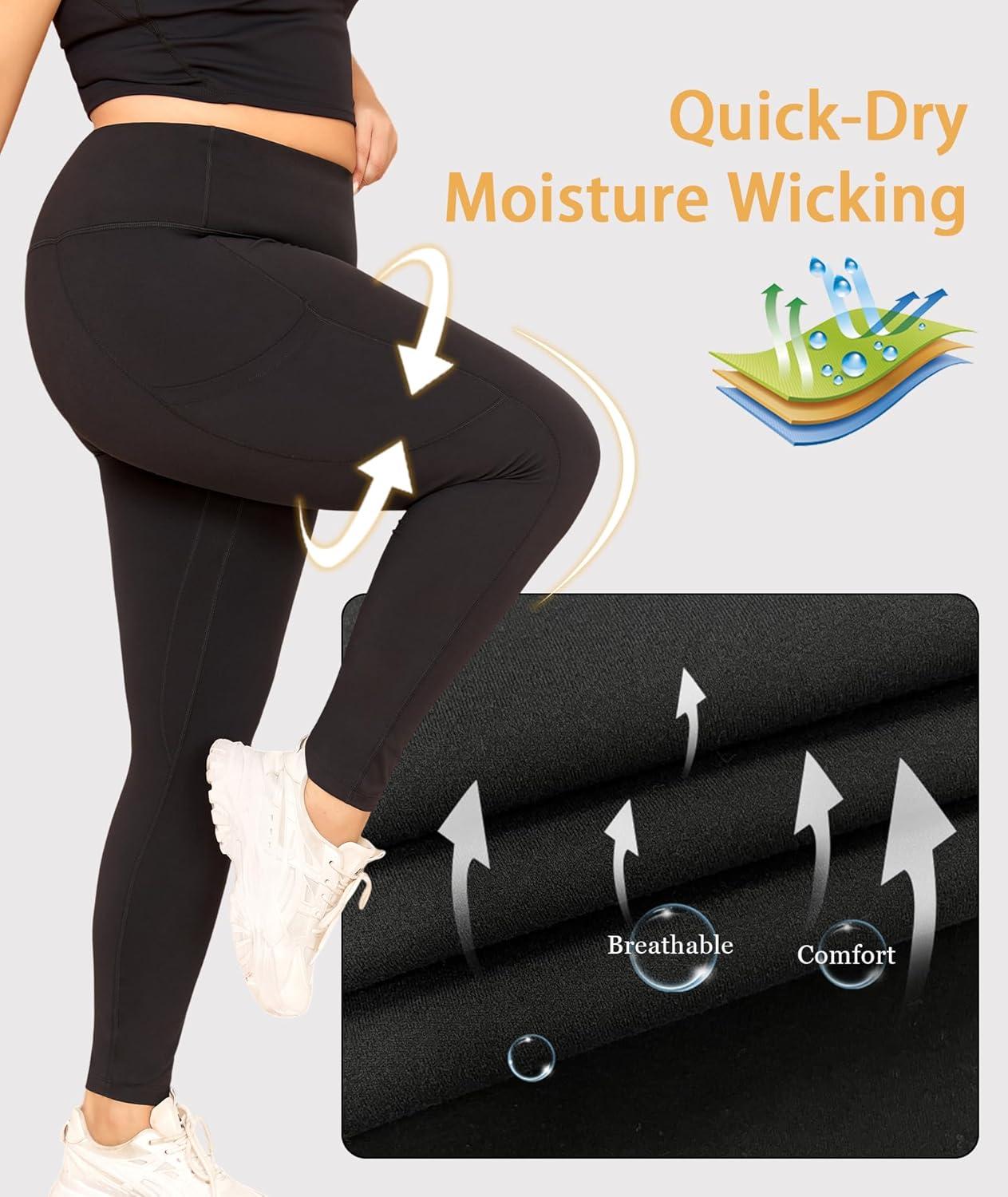 LALAGEN Plus Size Leggings for Women with Pockets-High Waisted Compression Tummy Control Workout Gym 7/8 Length Yoga Pants(Black)