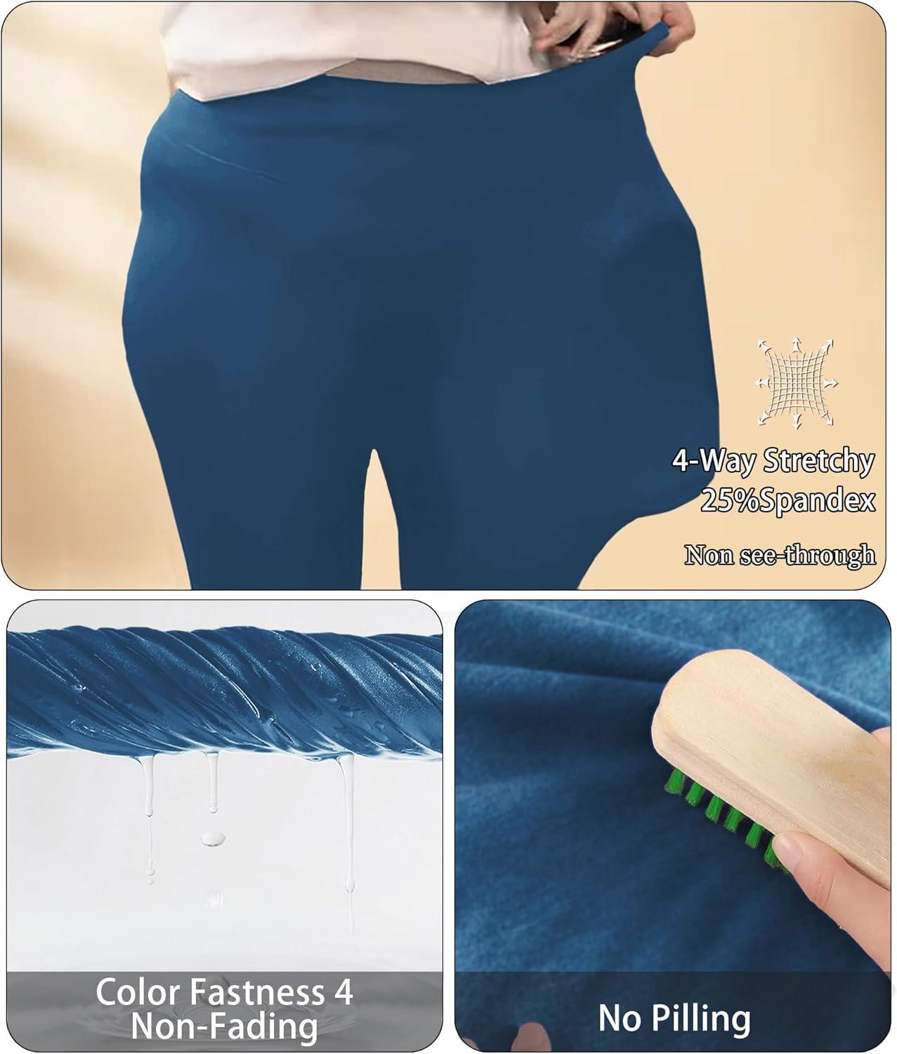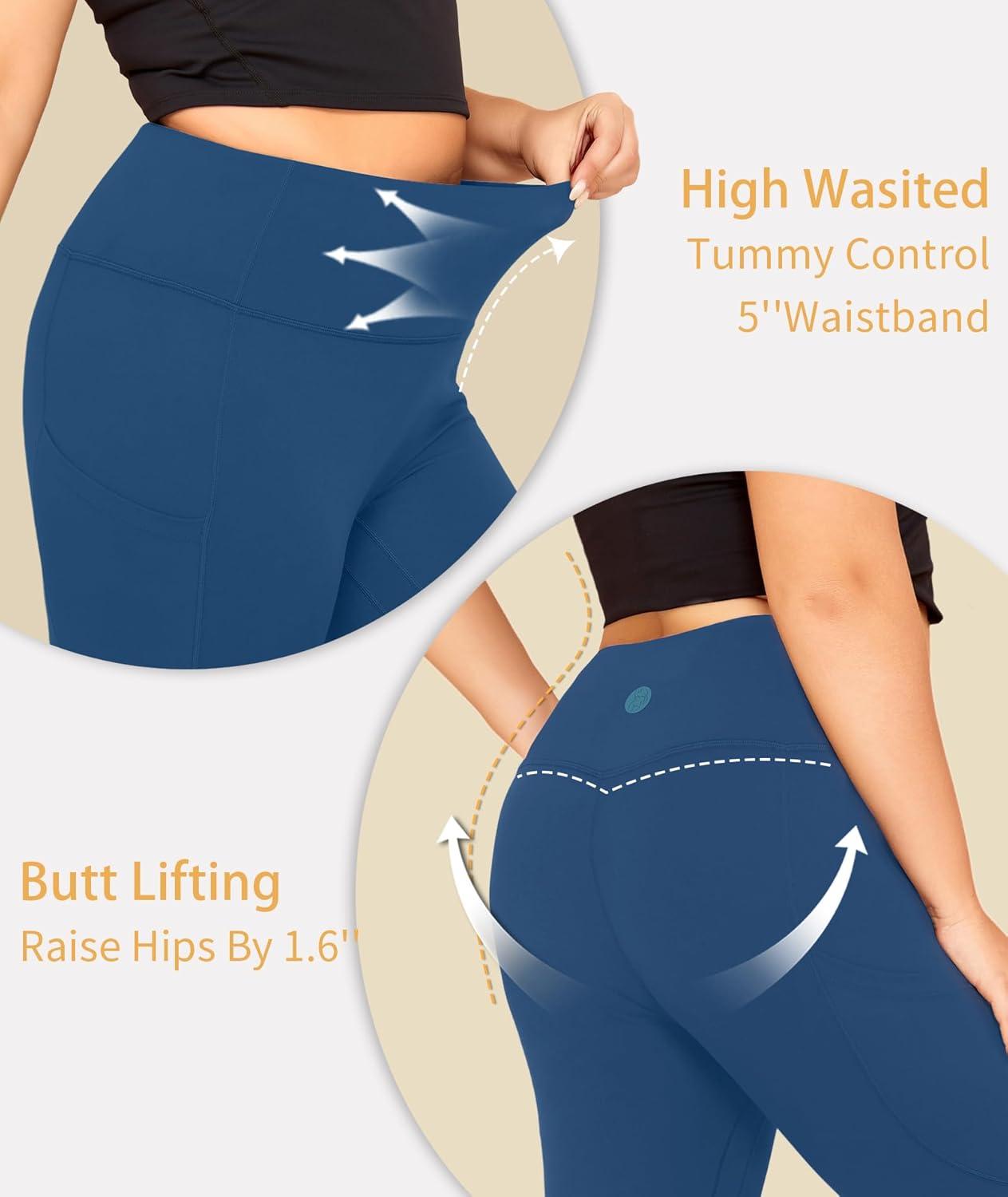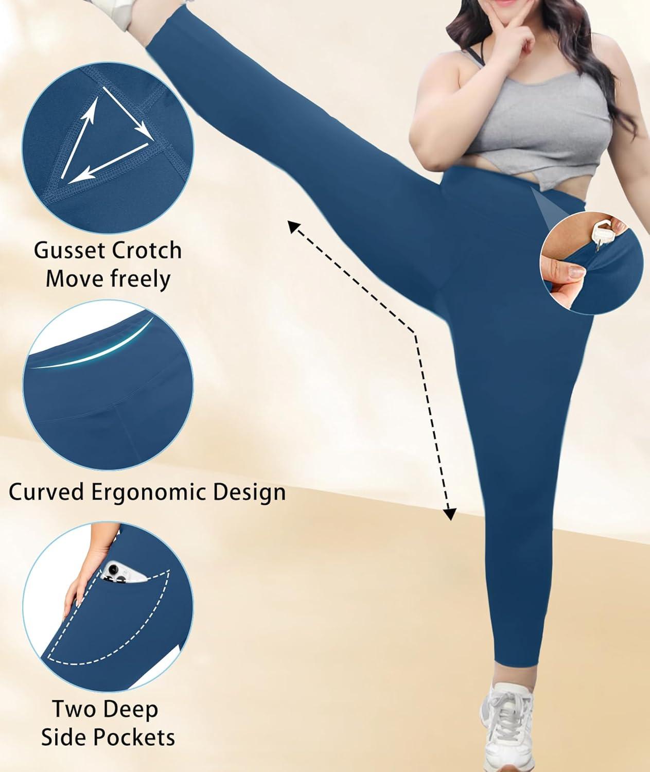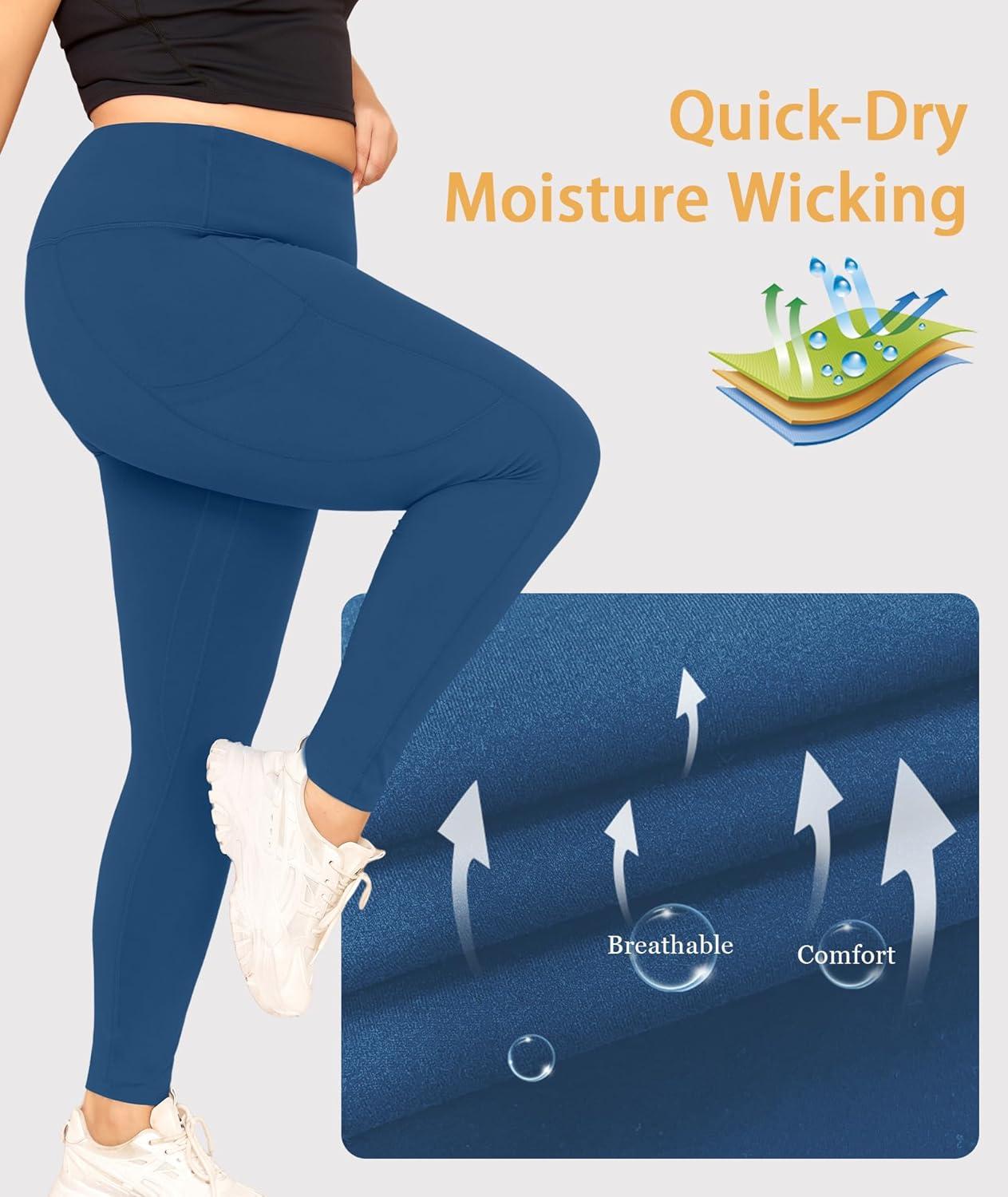 LALAGEN Plus Size Leggings for Women with Pockets-High Waisted Compression Tummy Control Workout Gym 7/8 Length Yoga Pants(Dark Blue)