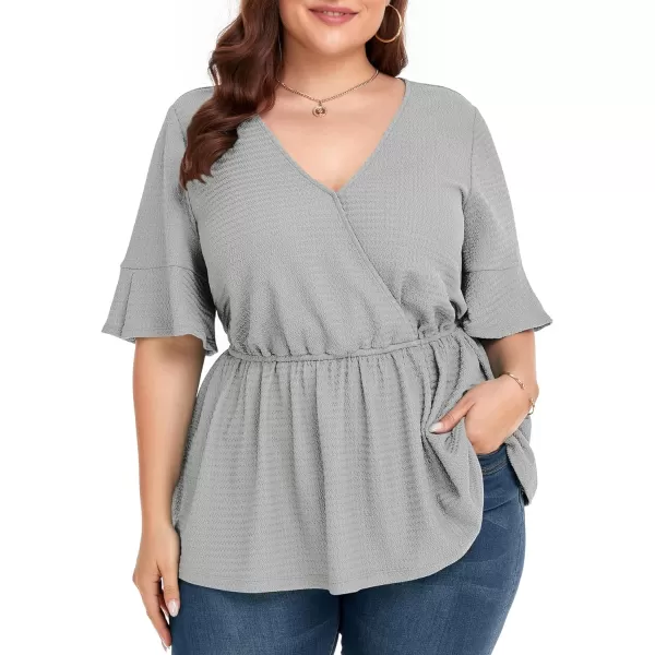 LALAGEN Plus Size Tops for Women Casual Peplum Blouse Short Sleeve V Neck Dressy Top 1X-6X(Grey)