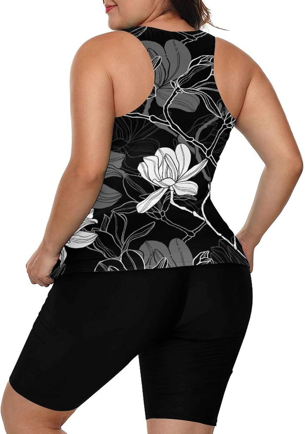 LALAGEN Womens 2025 Plus Size Tankini Swimsuits Rash Guard Capris Athletic Two Piece Swimwear Bathing Suits for Women S-5X(Floral Black White)