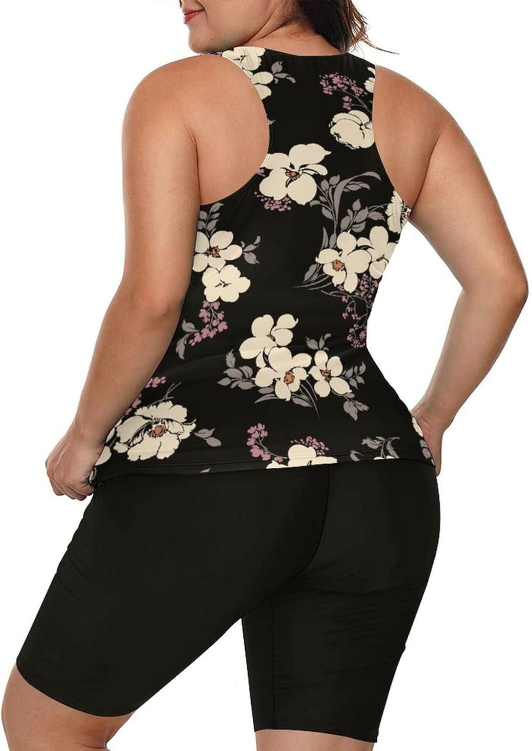LALAGEN Womens 2025 Plus Size Tankini Swimsuits Rash Guard Capris Athletic Two Piece Swimwear Bathing Suits for Women S-5X(Floral Black Yellow)