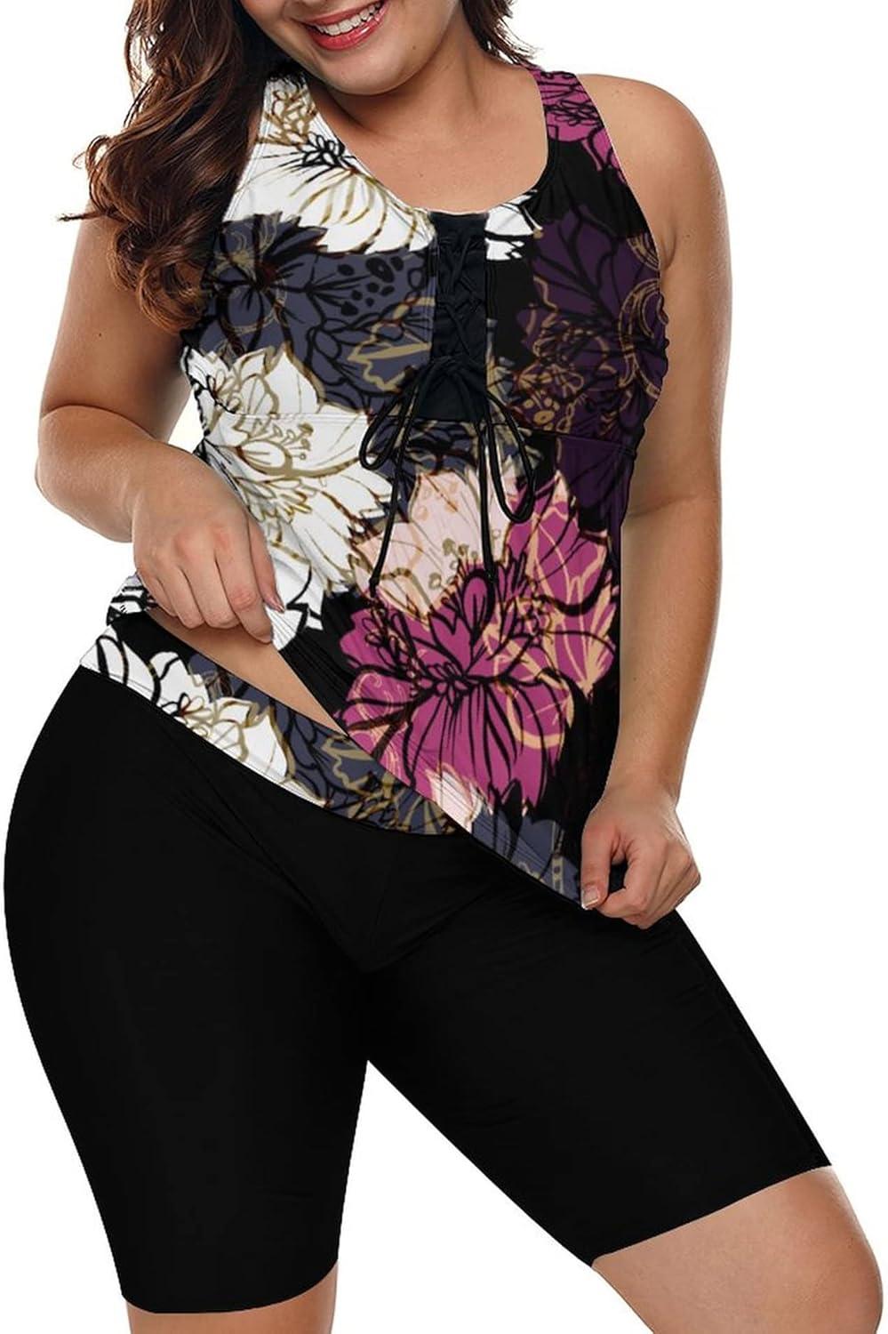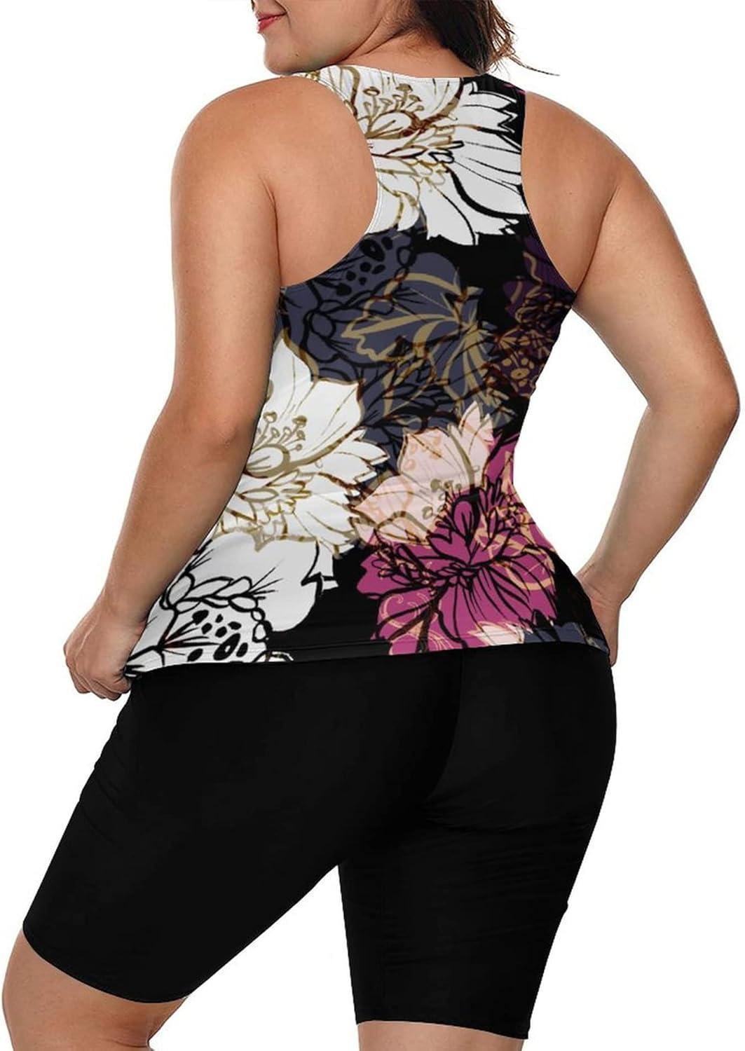 LALAGEN Womens 2025 Plus Size Tankini Swimsuits Rash Guard Capris Athletic Two Piece Swimwear Bathing Suits for Women S-5X(Floral Black White)