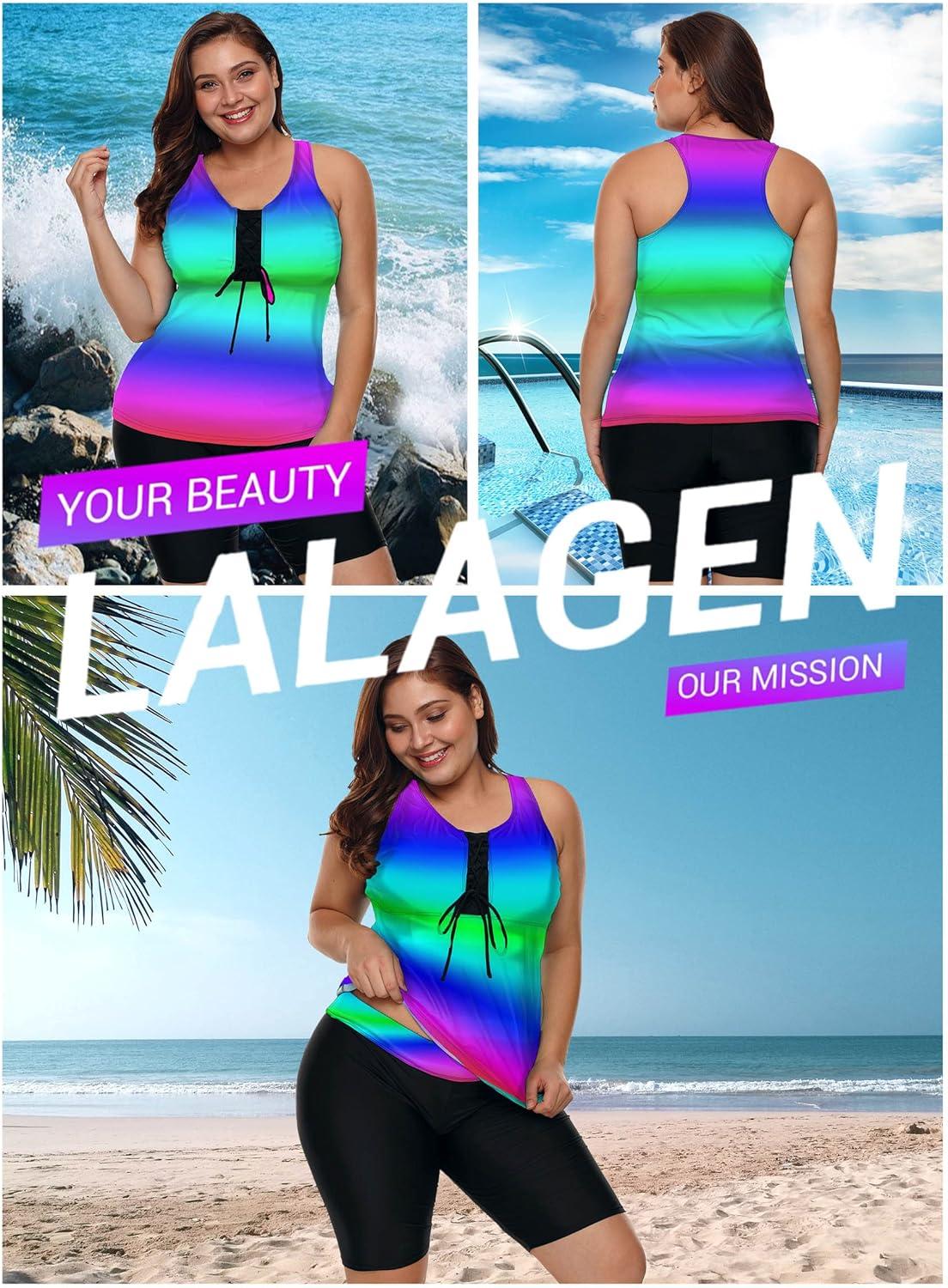 LALAGEN Womens 2025 Plus Size Tankini Swimsuits Rash Guard Capris Athletic Two Piece Swimwear Bathing Suits for Women S-5X(Green Blue)