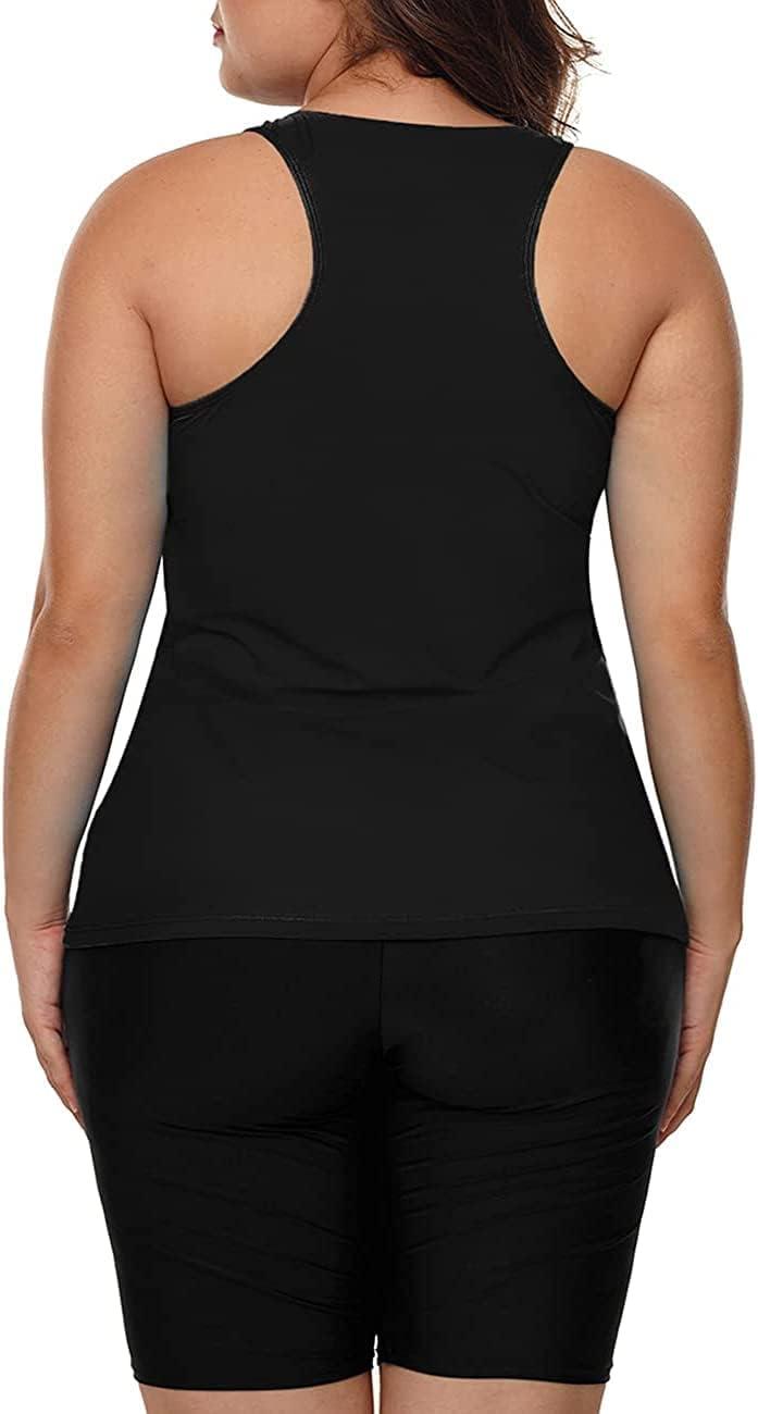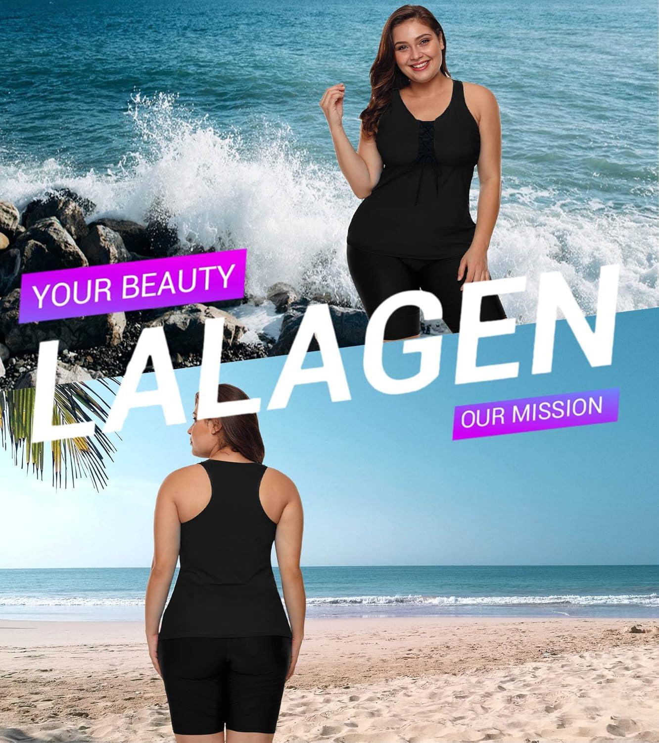 LALAGEN Womens 2025 Plus Size Tankini Swimsuits Rash Guard Capris Athletic Two Piece Swimwear Bathing Suits for Women S-5X(Solid Black)