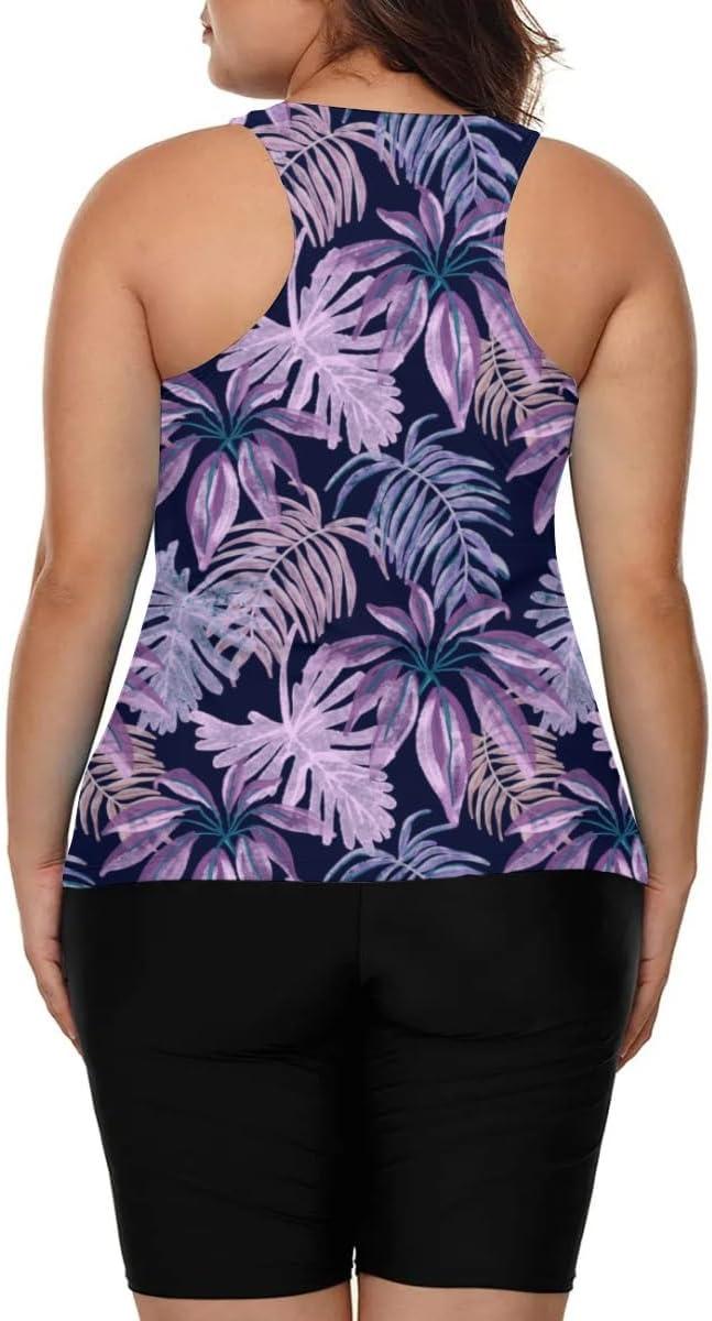 LALAGEN Womens 2025 Plus Size Tankini Swimsuits Rash Guard Capris Athletic Two Piece Swimwear Bathing Suits for Women S-5X(Z-purple Leaves)