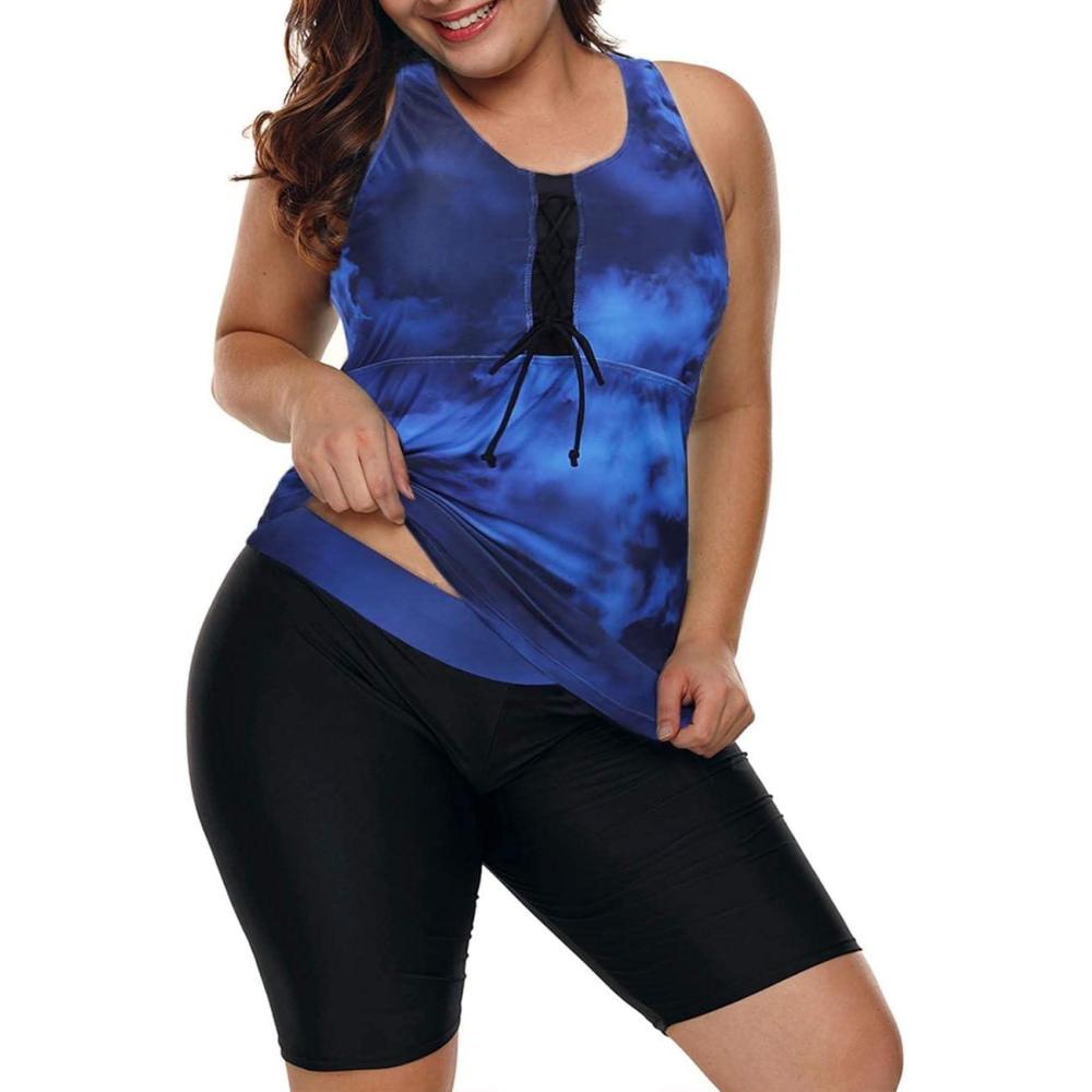 LALAGEN Womens 2026 Plus Size Tankini Swimsuits Rash Guard Capris Athletic Two Piece Swimwear Bathing Suits for Women S-5X(Z-black Blue Dot)