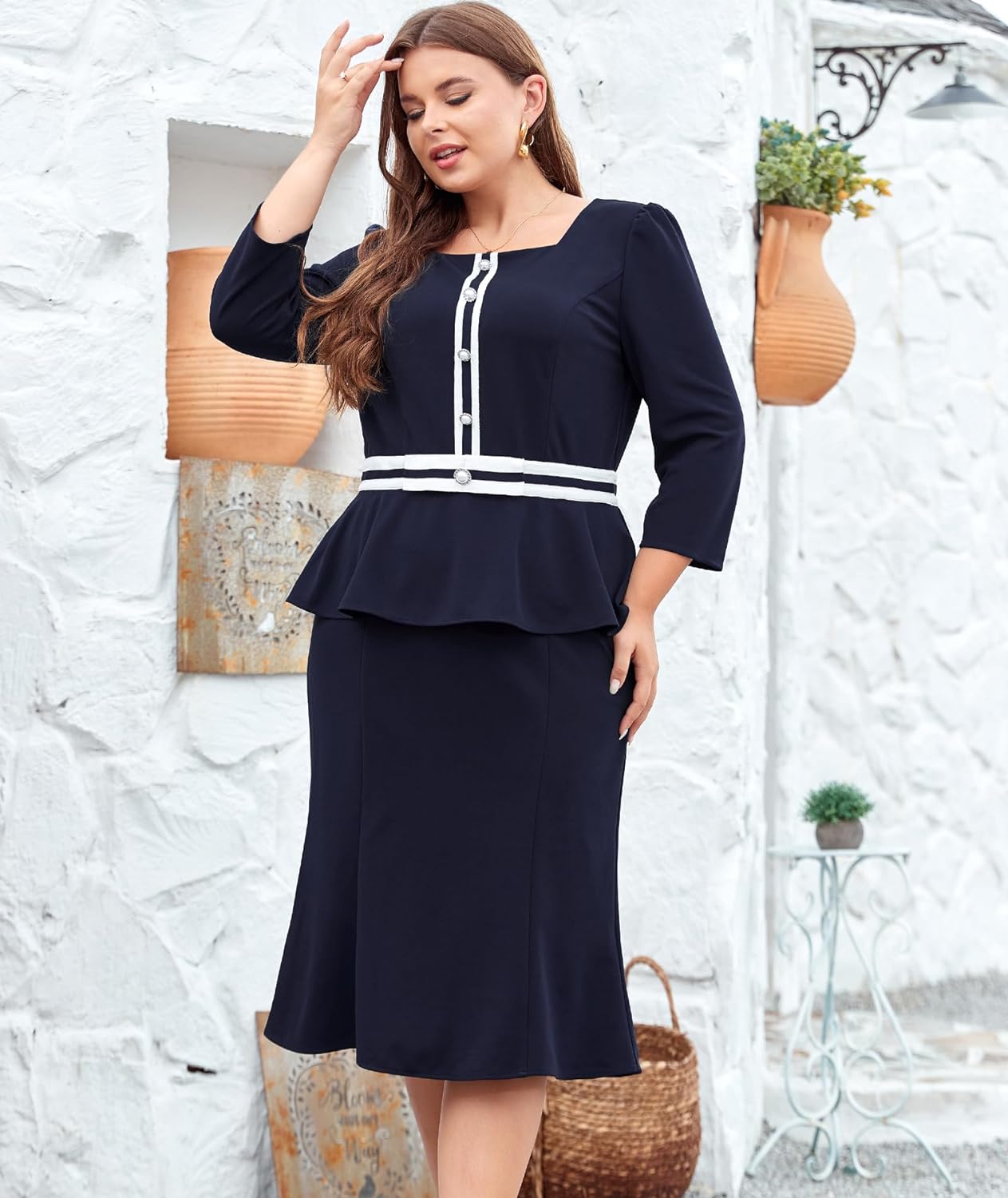 Don’t miss out on our limited-time offer: buy LALAGEN Women’s Plus Size Long Sleeve Peplum Tie Neck Bodycon Pencil Midi Dress, get a free {accessory}!